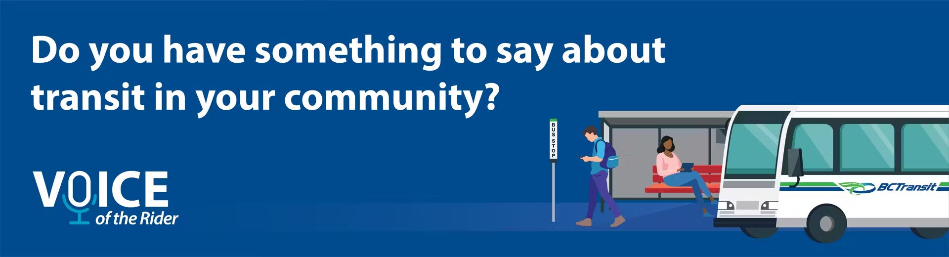 Hearing from the communities we serve is one of the best ways BC Transit can improve. The valuable feedback that you will share in this 10-minute survey will help us determine the important rider and non-rider sentiments, which will provide us with actionable insights to improve the customer experience.